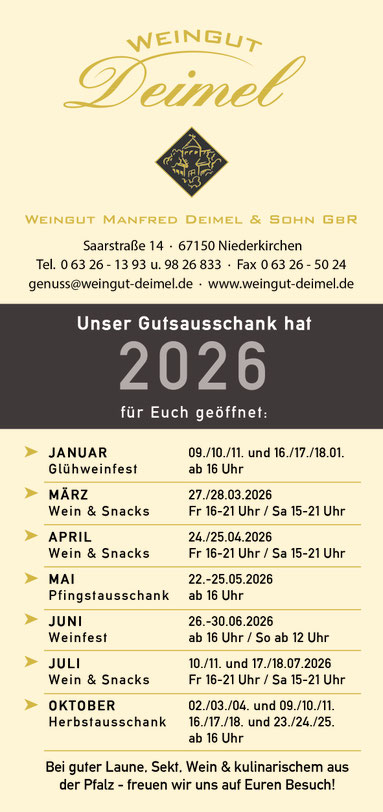 Reservierungsanfragen gerne per Mail an genuss@weingut-deimel.de